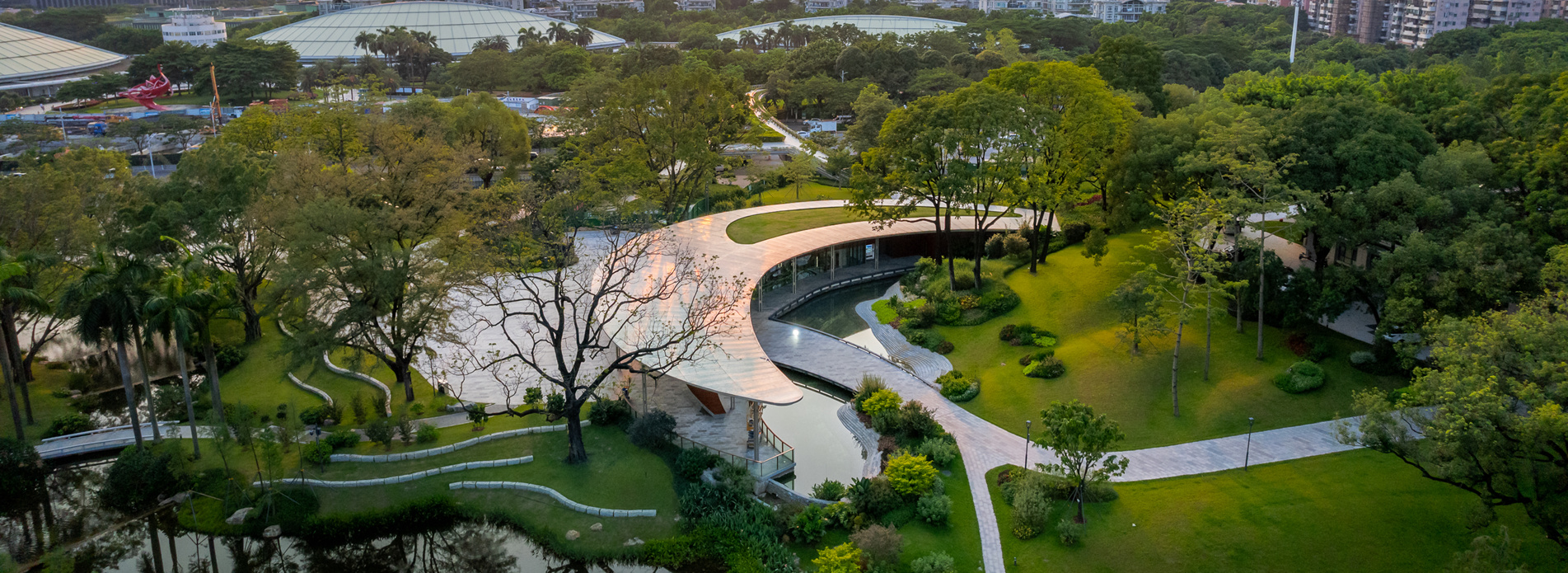 作為國賓館,松園賓館是嶺南園林的“代表作”。項目延續(xù)“疏林草地”風(fēng)格,保留原有喬木,將原有綠島提升為時花花境,并采用生態(tài)自然手法,以竹子、中型喬木為骨架,弱化建筑生硬感;同時,對臨水平臺進行改造,提高...